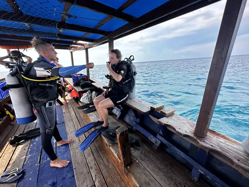 Matkani aikana tuntui, että aika kului siivillä, eikä koskaan ollut tylsää hetkeä. Jos minun pitäisi valita yksi asia, jonka tulen muistamaan ikuisesti, se olisi ensimmäinen kokemukseni laitesukelluksesta. Matkani sisälsi muutamia sukelluskertoja, ja näistä ensimmäinen oli Ahmedissa. Tämä jos mikä oli täydellinen paikka kokeilla sukellusta ensimmäistä kertaa, sillä voit kirjaimellisesti kävellä sukelluskeskukselta suoraan rannalle ja veteen. Ennen meressä sukeltamista pääsin kuitenkin harjoittelemaan tekniikoita sukelluskeskuksen uima-altaaseen.