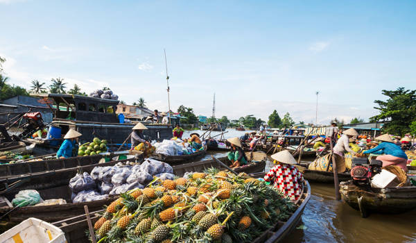 Mekongin suisto, jokien ja riisipeltojen sokkelo, on parhaiten saavutettavissa kuivalla kaudella. Tämä on paras aika venematkoille, jotka kulkevat ohi kelluvien markkinoiden ja hedelmätarhojen.
