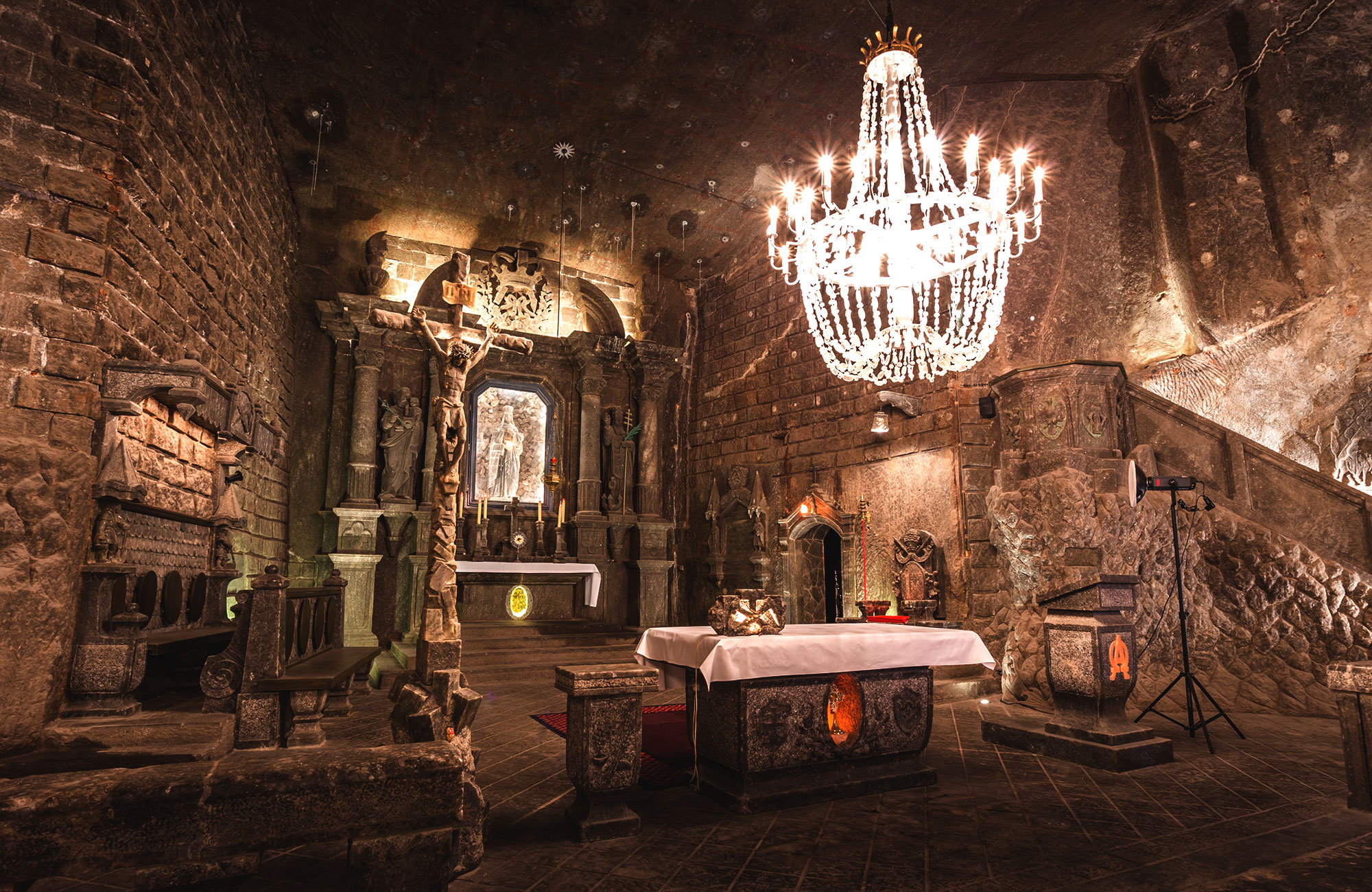 Yksi viikon kohokohdista oli päivän toinen kohde: Wieliczkan suolakaivokset. Jo laskeutuminen kaivokseen kymmeniä ja taas kymmeniä portaita pitkin oli kokemus itsessään. Kaivoksen suurimmassa nähtävyydessä, katedraalissa, oltiin juuri valmistautumassa suureen juhlatilaisuuteen, mutta sen massiivisuus ei silti jäänyt epäilyjen varaan. Suolasta tehdyt taideteokset ja patsaat uhmasivat käsitystä siitä, mikä on mahdollista, puhumattakaan katedraalista, vaikka siellä valmisteluita tehtiinkin. Myös ajatus siitä, miten syvällä maan sisällä olimme, oli yhtaikaa karmiva ja huikea. En suosittelisi kierrosta ahtaan paikan kammosta kärsiville.